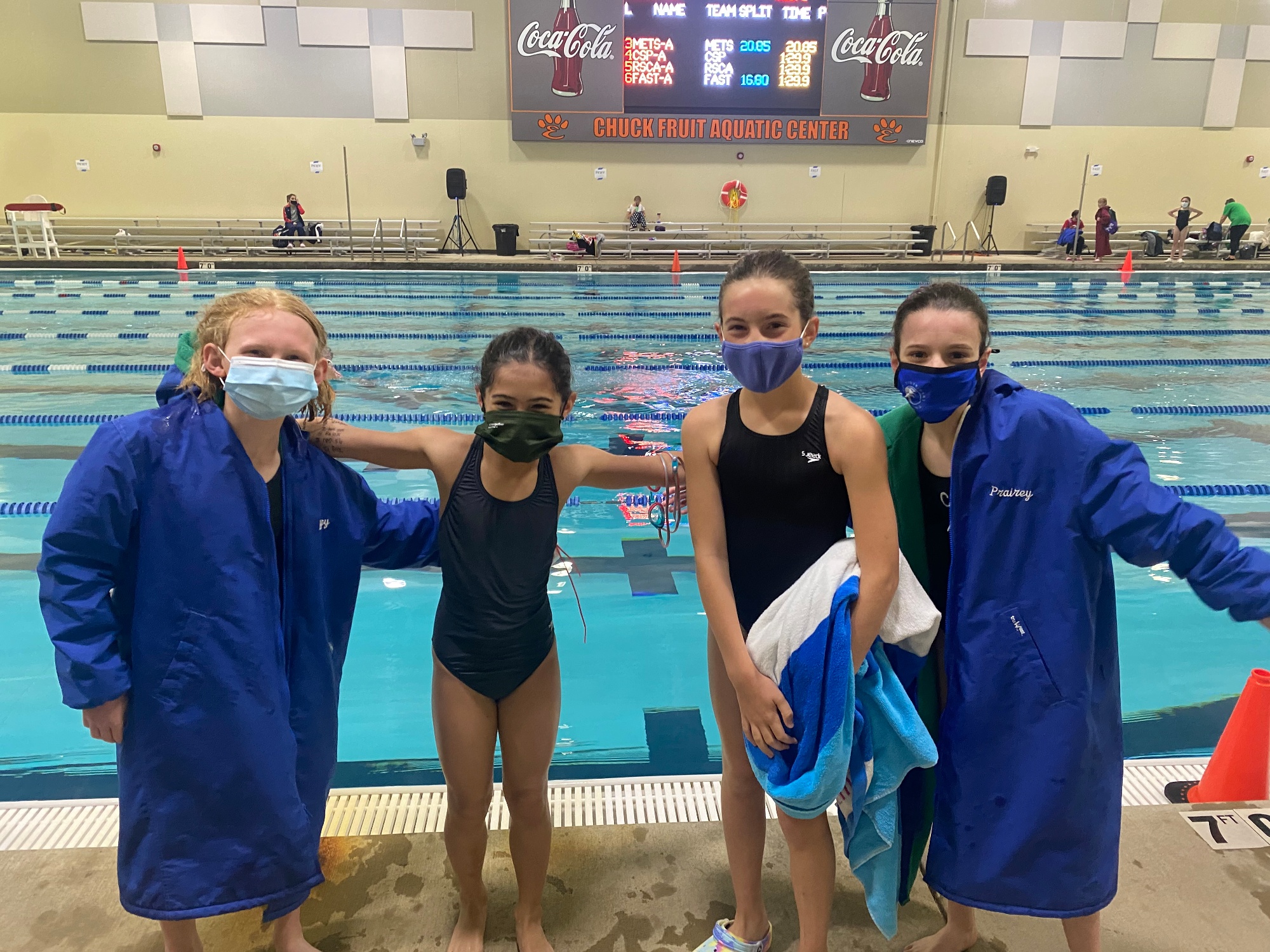 In the Relays, Olive, Emma, Marissa and Prairey won the 200 Medley for the girls, while Kate, Leela, Lucy and Molly were 5th. The boys also won with Eli, Evan, Mason and Reid.