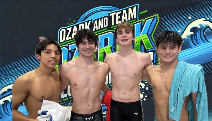 Team & Ozark Records - Austin (50 Back, 100 Back, 200 Back, 200 IM), Payton (50 Breast), 13-14 Boys 200 Medley Relay Jacob Corbett, JP C, Colin and Austin.